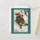 Vackert julkort som visar två barn som glider ner en snöslang på slakten. Andra barn leker i bakgrunden.