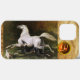 Elegant och klassisk design med gammal åldras grunge, bruna parchment-effekter och smart 3D-gult orange agate gem-sten, målning från Fransk målare Alfred-de-Dreux 19. Century.Vacker, orientalisk, vit arabisk häst med hundar.I vibrant brun, vit, grått färg Classy-monogramdesign är lätt att anpassade med initialer.