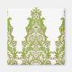 Den här designen skildrar ett komplicerat och enhetligt blommönster. Utformningen har symmetriska arrangemang för vinliknande inslag med känsliga löv och blommor. Det dominerande färgen är gröntens nyanser, med färgtoner av rosa och vitt, som skapar en harmonisk och elegant sammansättning. Mönster är mycket detaljerat, med invecklade läromedel och dekorativa blommor överallt. Det verkar vara en klassisk och traditionell utformning som påminner om vintage tapet eller textilmönster.