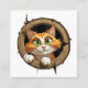 Den här tecknaden har en katt av orange med skarp grönt ögon och ett glatt, lekfullt uttryck. Katten håller på att kika igenom en runda hål och uppvisar en nyfiken och vismisk förnimmelse. Ram är detaljerat med sprickor och struktur, vilket ger lite realism, medan den övergripande utformningen förblir livfull och fullt