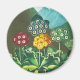 En grupp av Auriculas-verk av dr Robert John Thornton. The Temple of Flora (folio) Publicerad: London 1799-1807. Fyra Auriculas-blommor, blå, röd, gult och grönt, i levande djärv färg i första flygplan, där vi kan se berg i bakgrunden.