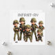 Detta är en karikatyrartad bild av en grupp spädbarn som är klädda i arméns kamouflage uniform och som även använder sina vapen i leksak. Bilden har en passande rubrik som INFANT-RY.