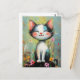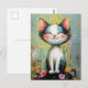 En gynnsam katt och blommor vykort