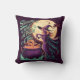 En trollkärna skakar en bubblningskauldron och kastar spådomar under ljusglöden från fullt måne, medan en elak katt vaknar från en bromätsticka.
