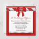 Inbjudan till julfesten av Eleganten är röd, med ett vitt textområde. Bilder med ett färgband med silver, i grund i textområdet och ett band med candy cane strimlad kant som är kant i silver överst. En röd satinbutik, med en enda vit snöflake, dekorerar det övre bandet. Text i rött och svart är helt anpassade till kostym som du behöver. Snygg festinbjudan.