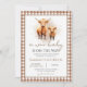 Gratulera till din kommande lilla med den här charmerande inbjudan till en höstlandskö i Baby. Med en söt vattenfärg på mamma och baby Highland coduo, mot en mjuk brun gingham-bakgrund med gyllene glasögon. Det här söta inbjudan ger mysiga gårdsvampar och höstvärme till din speciella dag, ett perfekt sätt att duscha din lilla "wee" en i kärlek! BBS1132