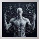 En invecklad konstfusion och vetenskap, som skildrar ett humant figur som är sammanflätat med matematiska ekvationer och mekaniskt inslag och symboliserar komplexiteten och precisionen hos artificiell intelligens och mänsklig anatomi