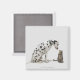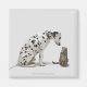En hund tittar på en katt magnet