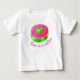 Sött baby-t-shirt med sommarljus vattenmelon och hjärtillustration. Text "En i en melon". Rosa och gröna färger.