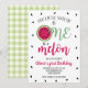 En i en Melon-Vattenmelon första födelsedagsfest inbjudan med melon grön bakgrund.