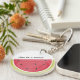 Kute vattenmelonsbit med rött insida, ljust grönt skorpa (yttre ring) och sju svarta frön. Valfri textmall skapat för dig.