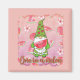 En roligt och viskartad design med en söt grönt gnome som glatt äter en saftig vattenmelon, parad med den lekande pun "En i en melon". Mot en bakgrund av pastellbakgrund som är spridd med vattenfärgen stil-vattenmelonsegment är denna vackra och livfulla rosa perfekt för sommartid älskare, fruktentusiaster och alla som har en bra med en söt twist!