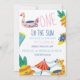 Inbjudan med strandtema för en födelsedagsfest En i solen