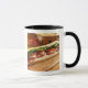 Tillgånglegitimation: 98841741/Christine Balderas/en italiensk undersmörgås med skinka, salami, peperoni, schweizisk ost, grönsallat och tomat på en smörgås rullar.