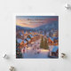 Ett julkort i personlig med en by som dekorerats till jul med snö på marken.
