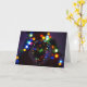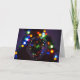 En hand håller en kristallfärgad boll framför en pulserande, flerfärgad visning av utomskärt helgdag. Sfären fångar upp och återspeglar en vackert vass syn på ett dekorerat Julgran. Julhälsningskortet innehåller ett täckfoto och handritade teckningar av chefsfotografen som kan skapa Välsigna dig, Keg Publishing LLC, Paul John Hausleben.
