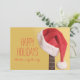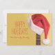 En julhatt hänger på en akustisk gitarr framför julkort