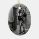 Denna prydnad presenterar en vintageillustration av egennamn Cratchit och mycket små Tim från en julsång vid tusan.