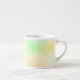 En keramisk mugg på en vit marmoryta har en pastellgradient i gröna, gula och persikotoner, vilket ger ett mjukt och lugnande utseende.