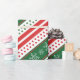 En klassisk julklapp mönster rand snöflingor röd och grönt som slår papper.