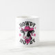 En ko som bär en vibrerande rosa cowboy kaffemugg