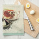 En kopp av tea och sötsaker med citationstecken kökshandduk