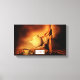 Kaffetid - Träfigur med kanna, står på kaffebönor och häller kaffe i en vit kopp, med brun textur