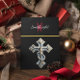 Omslaget till bok med en framstående symbol för kor, som står mot neutraltens bakgrund. Kor är mycket designat och symboliserar tros- och andlighetsteman.