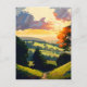 Detta konstverk när sol går över horisonten, kastar en varm orange över himlar, fångar vinden och flyter genom träd på grönten backe nedanför.