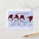 Fyra snömän som bär röda hattar mot en bakgrund av snö 100% Anpassning. Klicka på knappen ANPASSA för att lägga till, flytta, ta bort, ändra storlek eller ändra teckensnitt eller grafik.