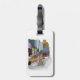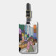 En kvinna går ner på en bustig stadsgata. bagagebricka