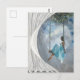En kvinna i blå klänning på en sväng vykort