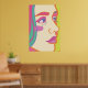 En fiktiv porträtt av en kvinna med smart makeup, som är ljusa färger i ett modernt stil.