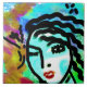 Min färgstarka abstrakt digital porträtt för en kvinna som är tryckt på keramiskt plattor