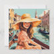 En kvinnlig turist i Helgdagarna för sommarkort i Venedig i Europa Kort Originalillustrationer av Roger Smith. Platta Helgdag på 5,25 x 5,25 tum designade för att göra hela året ljusare. Förstklassigt, tjockt, extremt tjockt kort med en tjocklek på 32 pt/240 lb Vikt Eggshell-vit avsluta, mjuk bomullstyg struktur-Papper är lätt att skriva på och smetar inte. High Definition Made and print in the USA.