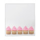 Fem vaniljda muffinsar med rosa frostar grund i anteckningsblocket med gott om skrivutrymme.