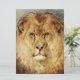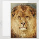 Den här designen innehåller en bild av en vattenfärgsmålning av den brittiska konstnären Heywood Hardy (1842-1933). Den visar en nära vy av en lejon tittar rak i visningsprogrammet. Djurets öga är piercing och dess mane är tjockt och busig. Det är en vacker varelse. Tekniskt sett är lejonare (Panthera leo) en art i familjen Felidae och en medlem av släktet Panthera. Lejon brukar leva tillsammans i pridena. Lejon har också kallats "djungelns kung", eftersom de är apexrovdjur, men de lever faktiskt på grässlätter och savannor i Afrika (och små delar av Asien). Det latinska ord för lejona är "leo", och något kan sägas vara "leonin" om det ser ut eller beter sig som en lejon. Heywood Hardys originalkonstverk färdigställdes 1878 och det finns nu i Russell-Cotes Art Gallery and Museum, Bournemouth, England.