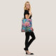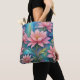 En levande och färgstark digital målning som skildrar en lush, tropisk trädgård fylld med stora, rosa blommor. Blommorna har känsliga petaler och vibrationscentrum, omgivna av grönt löv och löv. Bakgrunden är en övertoning av blues och gröntar som skapar en seren och drömliknande atmosfär i säcken