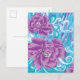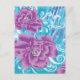En levande textildesign med lila och turk helg vykort