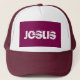 Bara texten "Jesus" i vitt på en lila bakgrund.