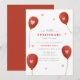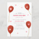 En liten älskling är på väg" Fira bebisfesten med denna Alla hjärtans dag-tema bebisfestinbjudan med en modern minimalistisk söt röd akvarellballong med rosa mini hjärtan illustration.