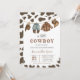 Fira din lilla pojkes ankomst med vår lilla barnstödsinbjudan! Inbjudan har klassiska brunkospoter, vilket framkallar Gammala västern anda. Cowboykläder, en hatt och små skor är farliga på en linje och ger en lekfull och rustik beröring till temat för evenemanget. Perfekt för en rodeo-inspirerad eller Western-temeddrad babydusch, den här inbjudan fångar en liten cowboys charm på vägen. Låt denna lovvärda inbjudan ange tonen för ert Vilda western firande! BBS719