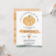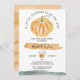 En liten Pumpkin-Blommigt för höstfällor för barn under höstsäsongen, könskrävande inbjudan för mor att vara, med vattenfärgspumkin och grön med gyllene detaljer