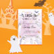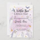 En liten Boo är nästan på sin plats! Cute Pastel lila Halloween-tema för inbjudningar till pojk- och flickdusch. Den moderna designen har en söt vattenfärgsbakgrund med liten spöken, fladdermus, löv och pumpillustrationer. Perfekt för en liten pojke och flicka på vägen