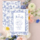 En liten fjäril Blue & White Blommigt Baby Shower Inbjudningar