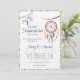 En liten Dreamcatcher Baby Shower-inbjudan Dreams och önskemål är sammanvävda för att välkomna en liten drömmare in i våra liv! Vår "lilla Dreamcatcher är på väg"-inbjudan till babyduschen fångar det centrala i drömmar och magi med sin nyfikna design och känsliga fjädrar. Eftersom detta värdefulla Baby ger ljus och underverk till vår värld, låt oss hon samlas för att duscha sina föräldrar med kärlek, välsignelser, och hoppas på en framtid fylld av drömmar som komen är sann. Gå med oss för en dusch av kärlek och glädje när vi firar den lilla drömmarens resa till kärlek och fantasi.