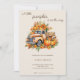 "En liten pumpa är på väg" inbjudan till söt fall-babydusch. Bild på vattenfärgspumpa lastbil.