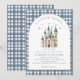 En liten inbjudan till Royalet Castle Baby Shower - En liten inbjudan till Prince Royal Castle Baby Shower - en bra inbjudan till babydusch med ett royal slott i blått och vitt med guld-stjärnor ovanför. Inbjudan accentueras med dammig blå plaid och modern typografi. En inbjudan som passar för hans royal.