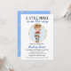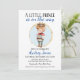Cute "lite prins är på väg"-inbjudan till babyduschen med ljusblå bakgrund och stjärnor på inbjudan, ändra texten till vad du vill när du beställer.