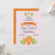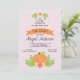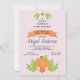 Den här söta inbjudan till babyfest har en färgglad grafik med en pumpa på en ljuslila bakgrund. Designen är accentuerad med en rosa blomma för en babyflicka.
